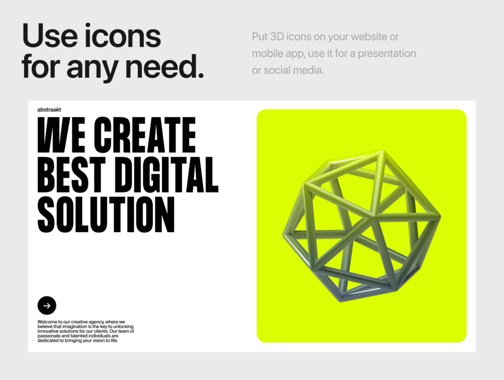 Abstraakt is a pack of custom 3D objects suitable for any kind of project. Create stunning, unique projects with these hand crafted abstract objects, easily editable in Figma, and fully customizable in Cinema 4D.