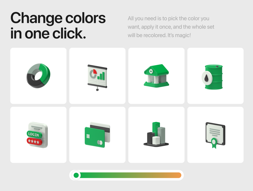 • 48 beautiful customizable 3D icons